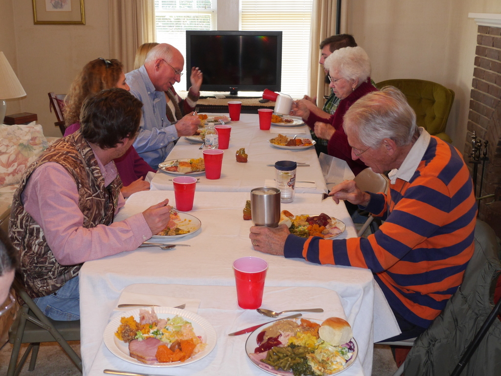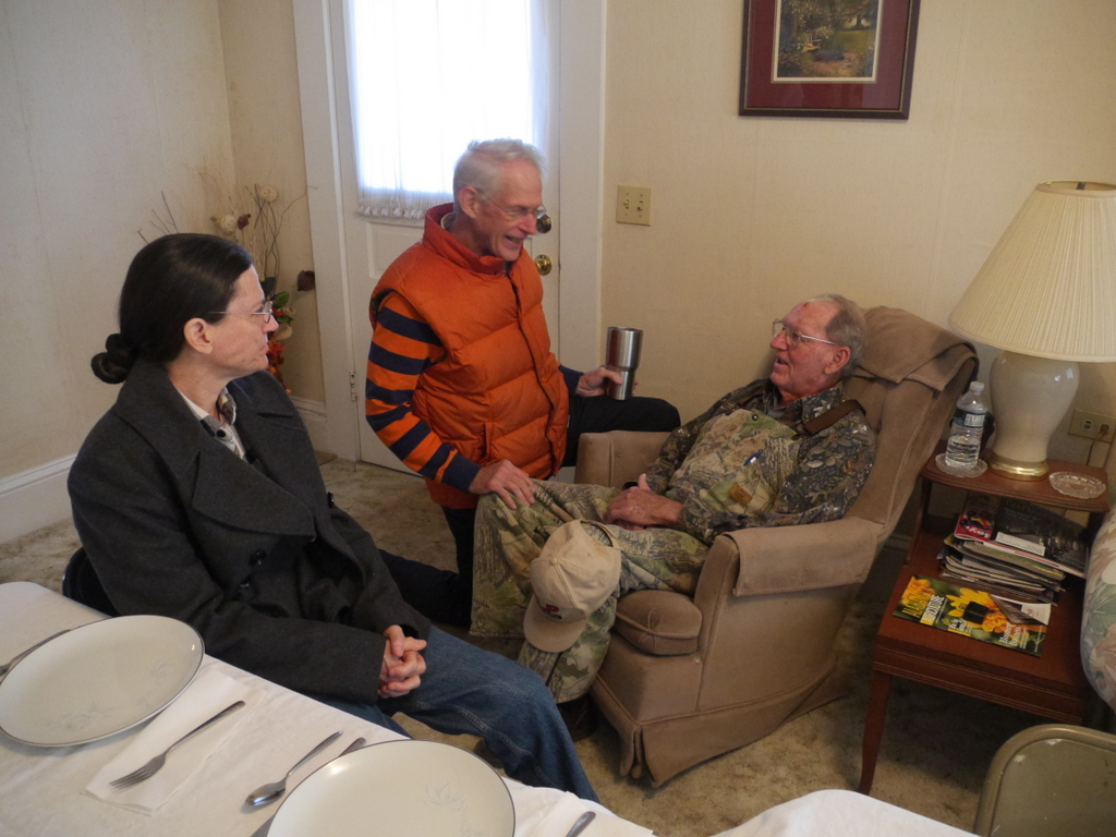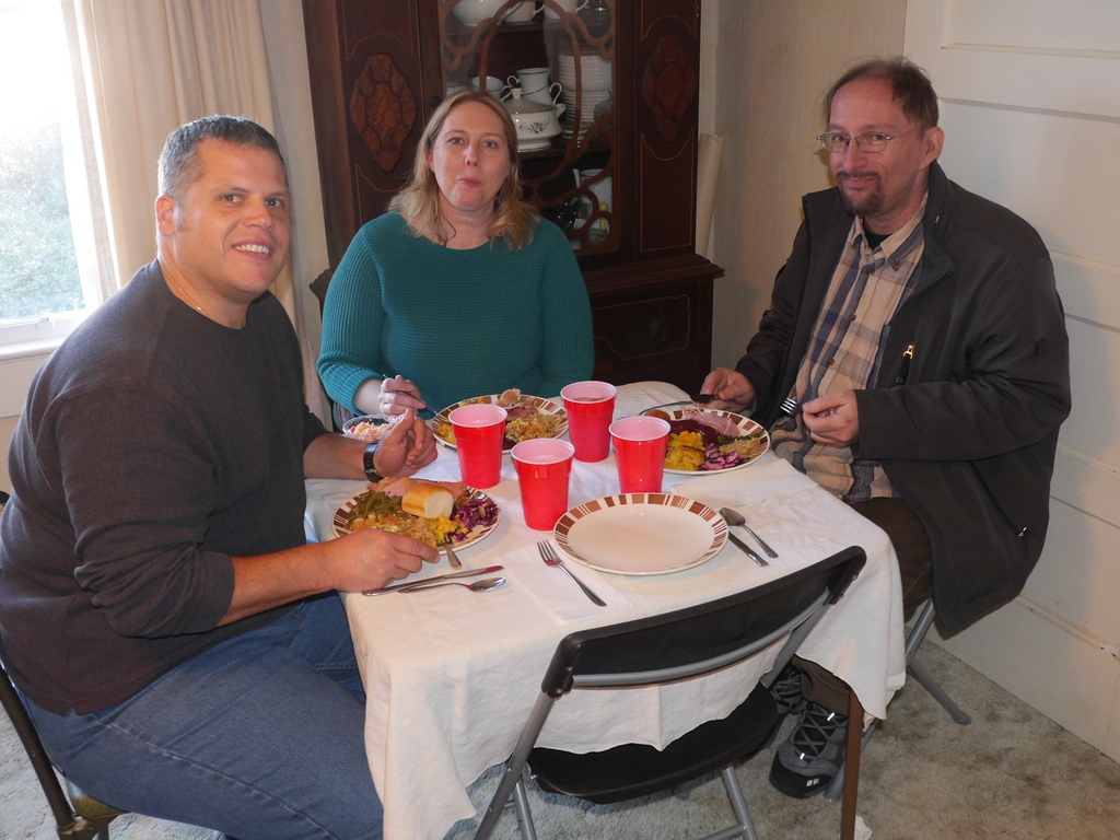It had been ten years since Jordan joined us so he had the honor of carving the turkeys JoAnn baked. James is looking on after peeling all the sweet potatoes for the casserole.